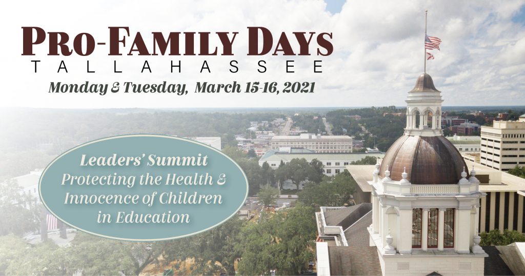 This year our Pro-Family Days event will be held live in-person on Monday and Tuesday, March 15 and 16, in our capital city of Tallahassee.