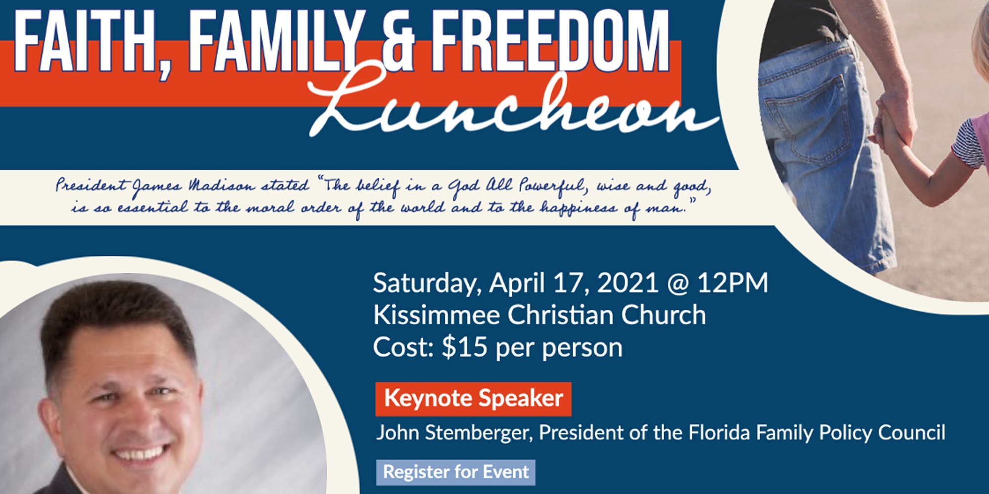Join the Faith-Based Initiative Group for an incredible guest speaker luncheon featuring John Stemberger, President of the Florida Family Policy Council, and faith-based political leaders of Central Florida.