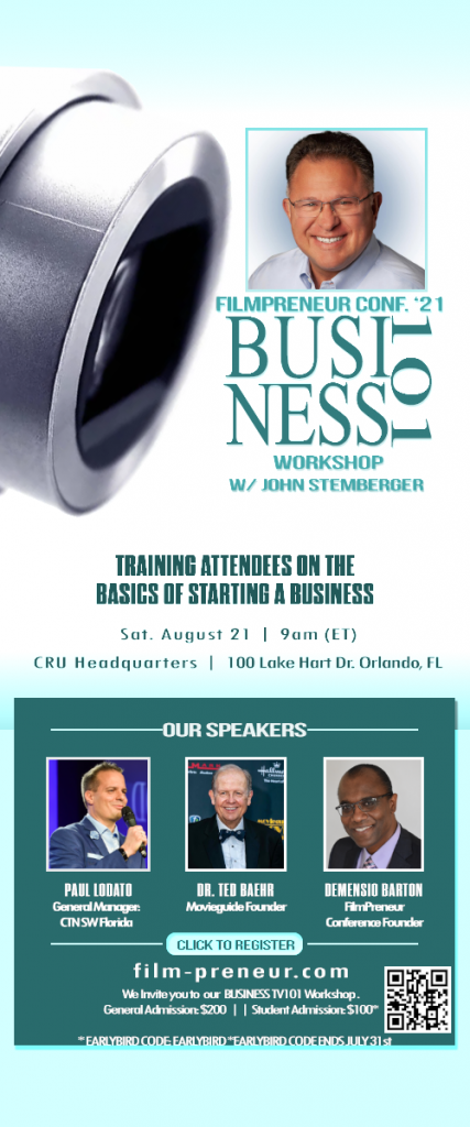 Conference speakers include FFPC President John Stemberger, Dr. Ted Baehr (Movieguide Founder), Paul Lodato (General Manager for Christian Television Network (CTN) Southwest Florida), and Demensio Barton (FilmPreneur and Conference Founder).
