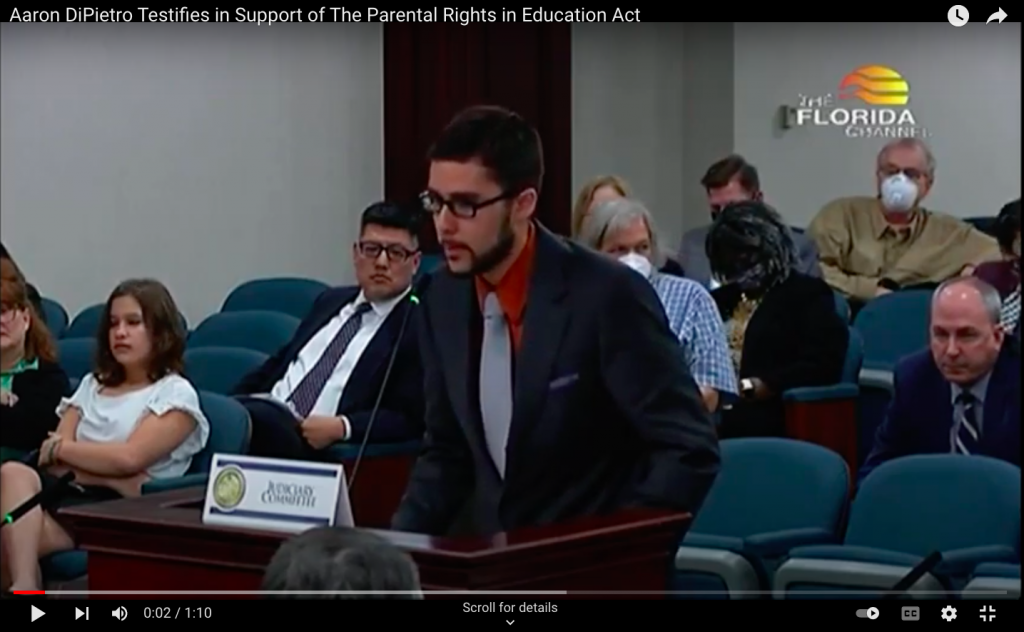 Proponents asserted that parental rights were fundamental and that the bill increased school district transparency. FFPC’s Aaron DiPietro emphasized the true nature and intent of the bill: to empower parents in engaging in their children’s educational success by increasing transparency in school district policy. He highlighted that contrary to critics’ claims, students were free to speak and discuss whatever they choose and organic discussion with teachers was not hindered. The bill only restricts official school districts from establishing planned instruction on sexuality issues in K-3rd grade. He emphasized the bill’s focus on protecting children by empowering parents to be engaged in their children’s lives and educations by increasing transparency in official school district policy, which was constantly ignored by the opponents. The video of his testimony can be viewed below.